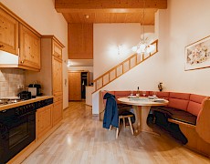 Up to 4 persons | 60 m²-67 m² | 2 flats:1 bedroom with double bed and 1 bedroom with two single beds | 2 flats: 1 bedroom with double bed and a double bed on the open loggia above the living room | bathroom with shower and seperate toilet | spacious living area | Balcony or winter garden with a view to the Hochkönig | suitable for couples, family and friends